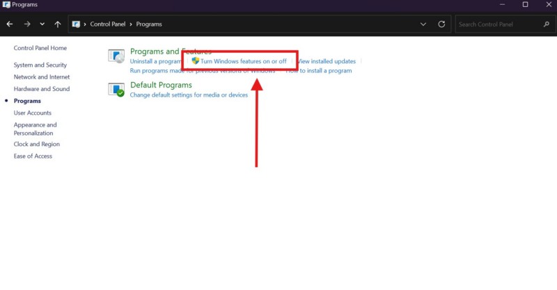 3.Alternativ können Sie die öffnenBedienfeld, geh zuProgramme, und wählen Sie das T ausAktivieren oder deaktivieren Sie die Windows-Funktionenunter demProgramme und FunktionenAbschnitt.