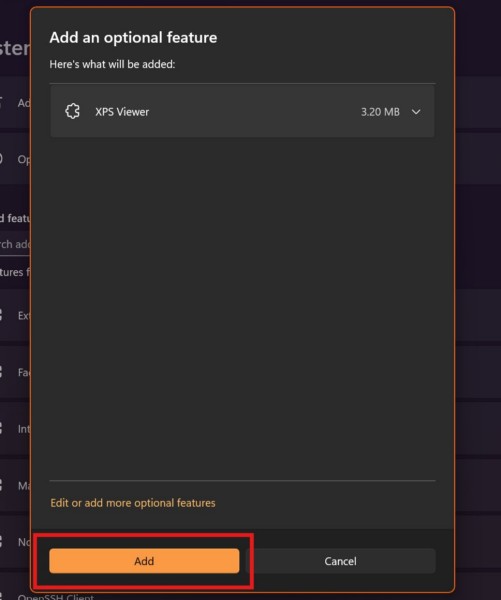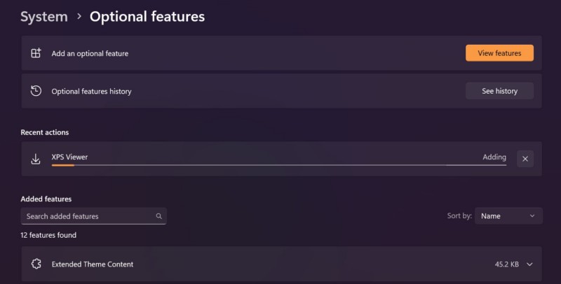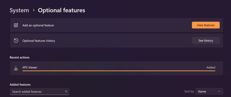 11. Warten Sie, bis der XPS Viewer hinzugefügt wurdeauf Ihrem Windows 11-PC oder Laptop.