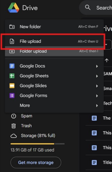 3.Wählen Sie im Dropdown-Menü die Option ausOption zum Hochladen von Dateien.
