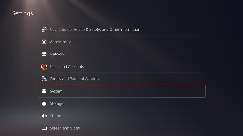 - Scrollen Sie im Menü „Einstellungen“ nach unten und wählen Sie „Aus“.System.