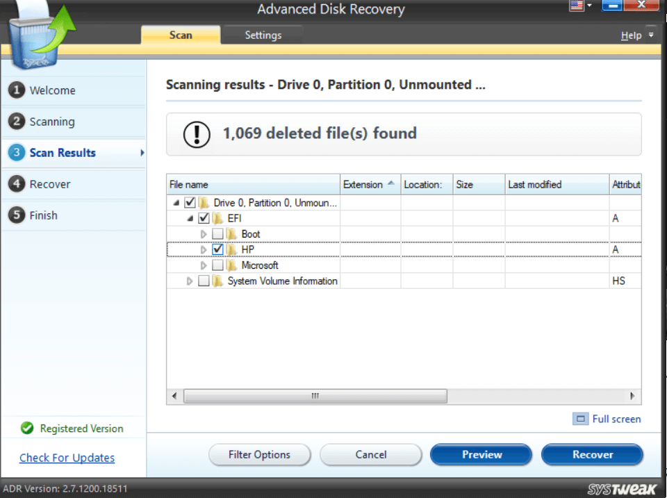 Schritt 6 –Warten Sie, bis der Scan abgeschlossen ist. Wählen Sie aus den gescannten Ergebnissen auf der rechten Seite die Datei oder den Ordner aus, die Sie wiederherstellen möchten. Klicken Sie dazu auf das Kontrollkästchen neben dem Namen der Datei oder des Ordners. Sie können sogar darauf klickenVorschau, um eine Vorschau des Inhalts der Datei oder des Ordners anzuzeigen.