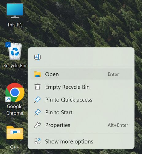 Schritt 1:Um den Papierkorb zu öffnen, klicken Sie mit der rechten Maustaste auf das Desktopsymbol und wählen Sie „Öffnen“.