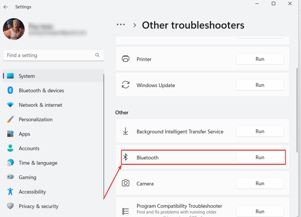 Schritt 5 –UnterAndere, klicken Sie aufLaufennebenBluetoothund befolgen Sie die Anweisungen auf dem Bildschirm.