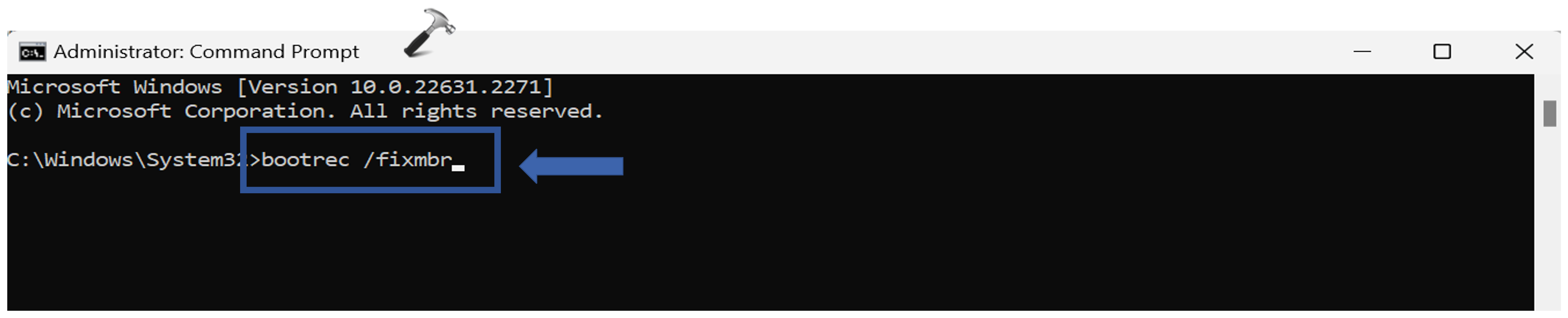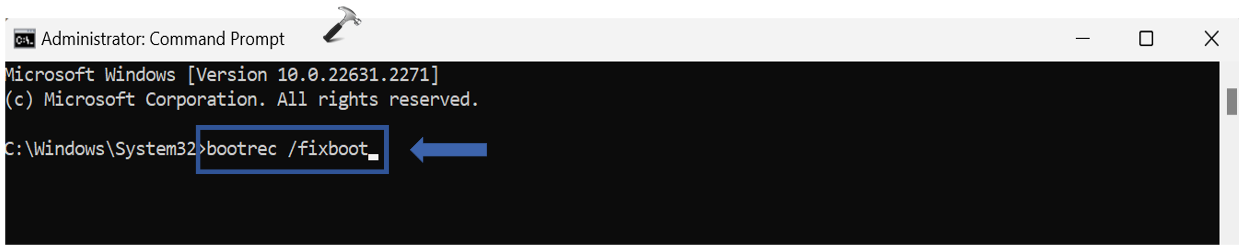 Derbootrec /fixbootDer Befehl repariert den Bootsektor. Der Bootsektor ist der erste Sektor der Festplatte und enthält den Code, der das Betriebssystem startet.