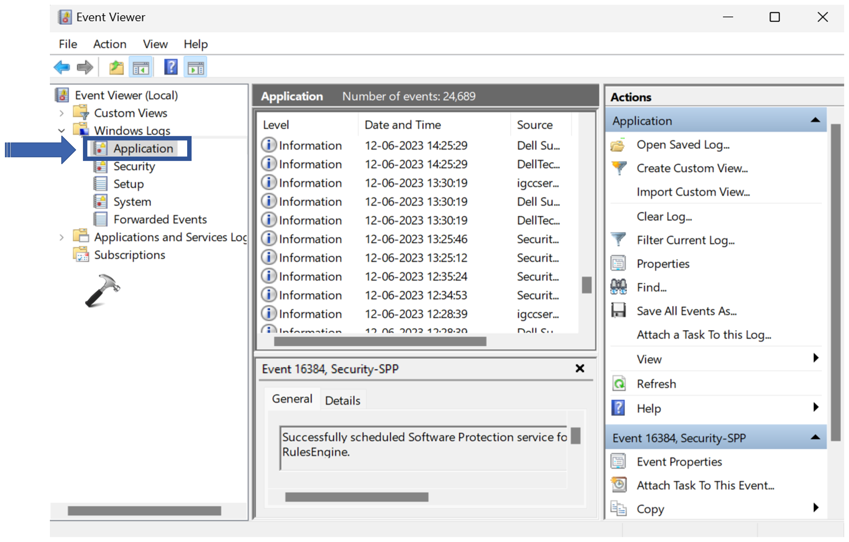 5. Erweitern Sie im linken Bereich das „Windows-Protokolle“ und klicken Sie auf „Anwendung“.