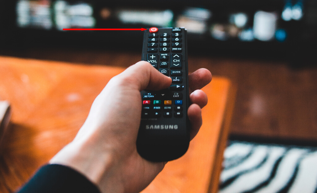 - Drücken Sie die TastePower-Tasteauf dem Samsung-Fernseher:Suchen Sie den externen Netzschalter am Fernseher selbst. Normalerweise befindet es sich entlang des Rahmens, irgendwo in der Nähe der vorderen rechten Ecke des Bildschirms. Warten Sie nach dem Ausschalten Ihres Fernsehers einige Sekunden und schalten Sie ihn dann wieder ein.