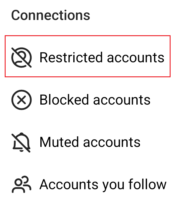 4. Finden Sie dieEingeschränkte KontenMenü unterVerbindungenAbschnitt und tippen Sie darauf.
