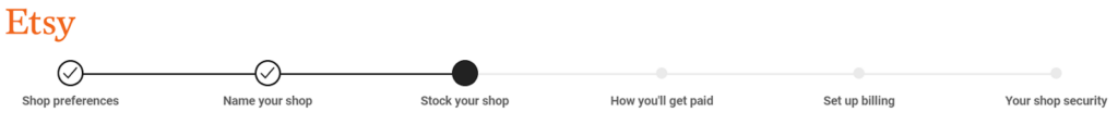 Alles beginnt auf der Etsy-Homepage. Sobald Sie sich registriert und Etsy mitgeteilt haben, dass Sie Ihren Etsy-Shop eröffnen möchten, führt Sie der Assistent durch alles, was Sie zum Einrichten Ihres Shops benötigen.