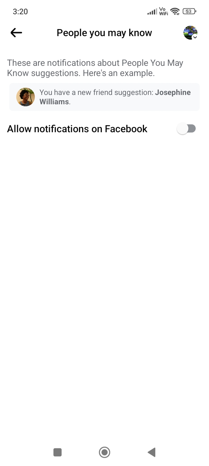 - Der Schalter wird ausgegraut, was darauf hinweist, dass die Benachrichtigungen zu Freundschaftsvorschlägen jetzt in Ihrem Konto deaktiviert sind.