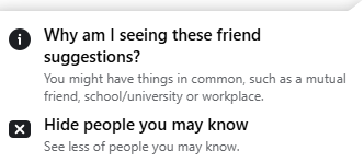 - Klicken Sie auf das Drei-Punkte-Menü (oder tippen Sie darauf, wenn Sie ein Mobilgerät verwenden). Dies bietet Ihnen zwei Möglichkeiten – einfach auswählenVerstecke Leute, die du vielleicht kennst,und die In-App-Freundesvorschläge werden für eine Weile verschwinden.