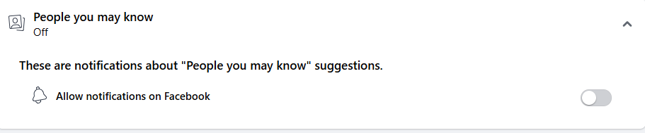 - Nach der Deaktivierung ist der Schalter ausgegraut und die Unterkategorien verschwinden. Ab sofort erhalten Sie auf Facebook keine Benachrichtigungen über Freundschaftsvorschläge mehr.