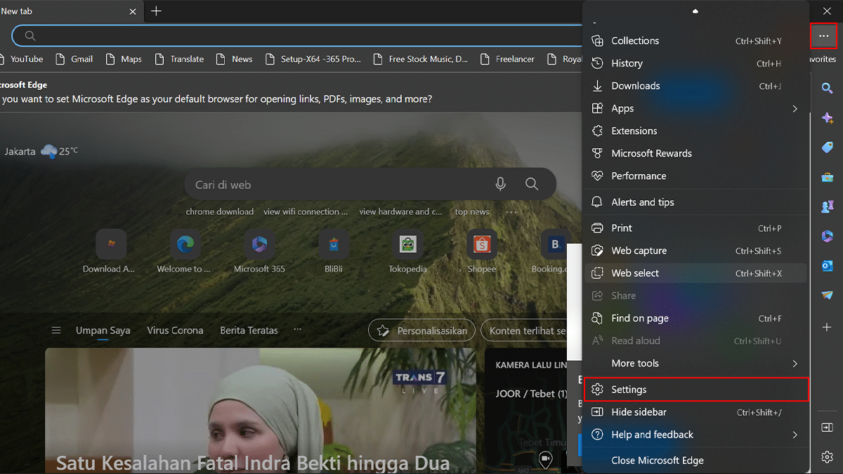 - Klicken Sie oben rechtsdreipunktiertSymbol > nach unten scrollen > klickenEinstellungen.