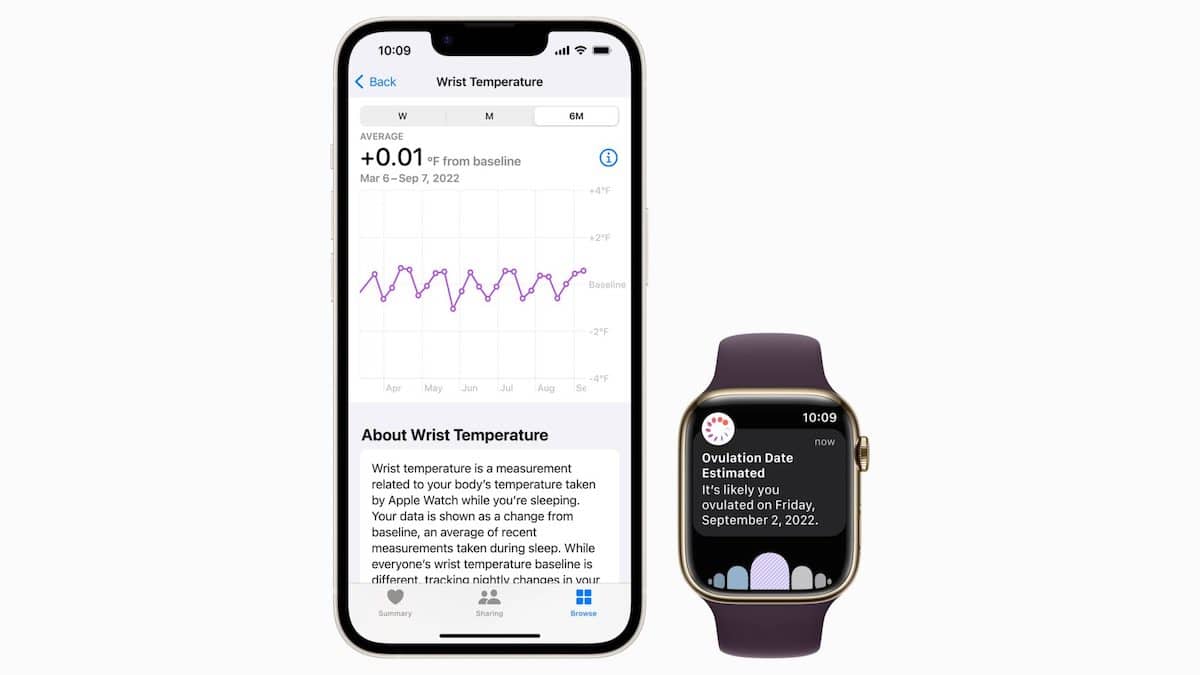 Die Apple Watch Series 8 oder die Apple Watch Ultra nutzen Handgelenkstemperaturdaten, um die biphasische Verschiebung zu erkennen, bei der es sich um einen Temperaturanstieg handelt, der häufig nach dem Eisprung auftritt. Fortschrittliche Algorithmen nutzen Handgelenkstemperaturdaten und protokollierte Zyklusdaten, um den wahrscheinlichen Tag des Eisprungs abzuschätzen.