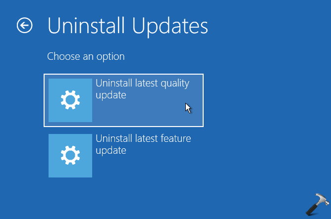 Wenn Sie nicht auf die App „Einstellungen“ zugreifen können, weil Ihr System nicht startet, können Sie Methode 2 ausprobieren, um Updates von den erweiterten Wiederherstellungsoptionen zu deinstallieren.
