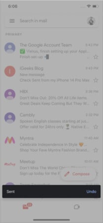 So rückten Sie eine gesendete E -Mail in Mail -App auf iPhone aus, die iOS 16 ausgeführt wird