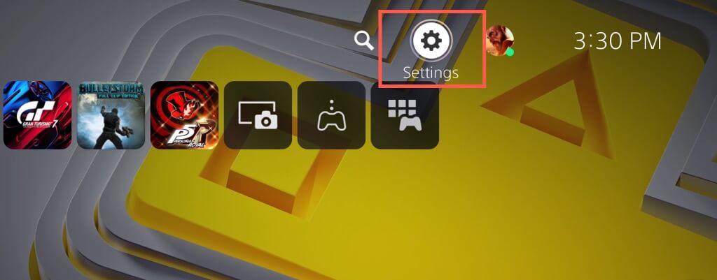 - WählenEinstellungenin der oberen linken Ecke des PS5-Startbildschirms.