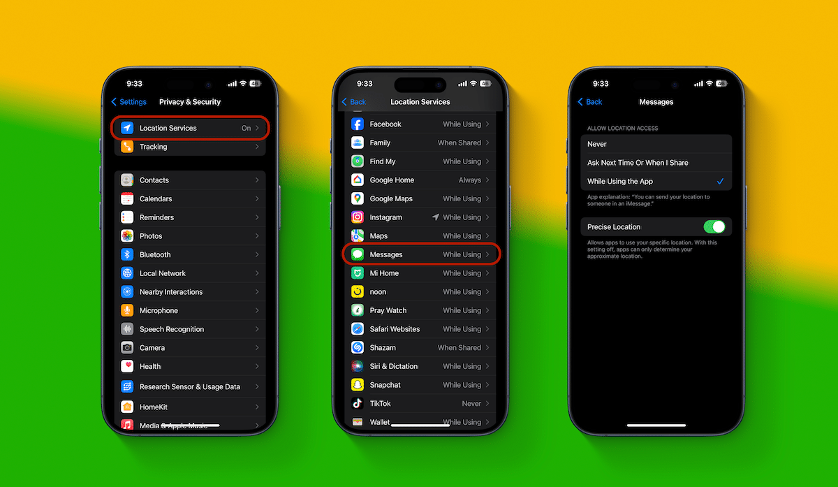 Um Check-In nutzen zu können, müssen Sender und Empfänger iOS 17 oder neuere Versionen verwenden und die Standortfreigabe über die App „Einstellungen“ > „Datenschutz und Sicherheit“ > „Standortdienste“ > „Nachrichten“ aktivieren.