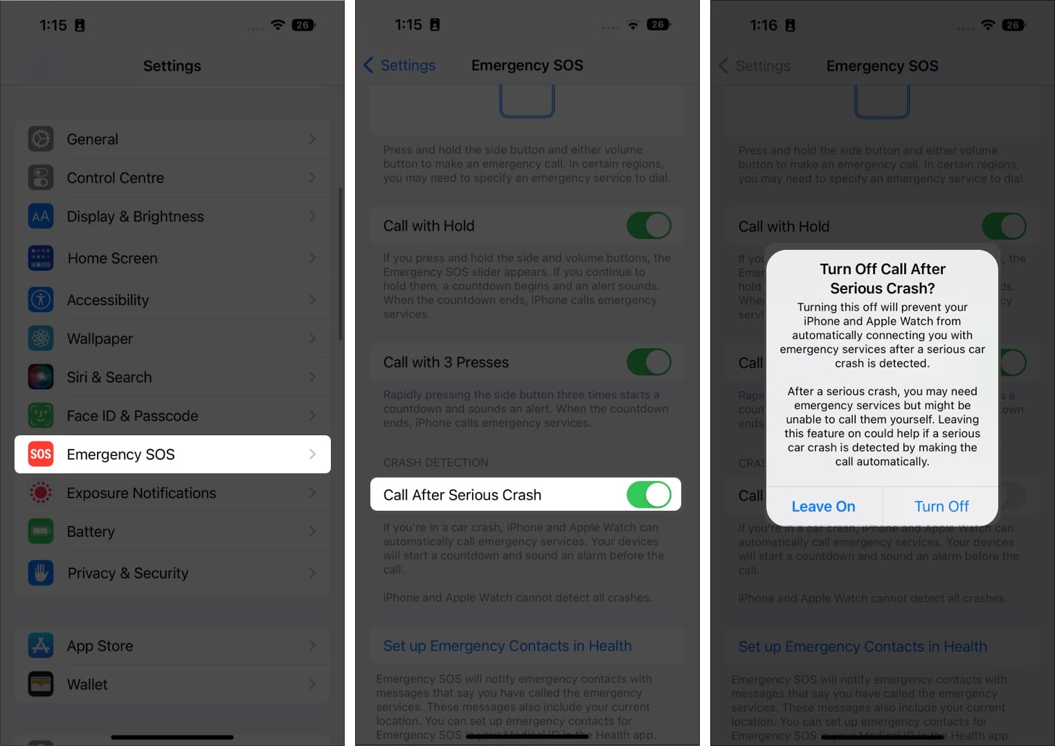 Deaktivieren Sie die Absturzerkennung auf dem iPhone