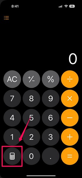 3. Tippen Sie auf die Taschenrechner-Schaltflächein der unteren linken Ecke.