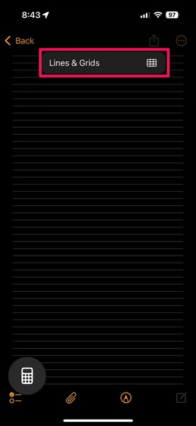 7.Tippen Sie aufEinstellungen für Linien und Gitter.