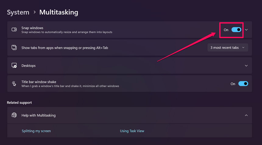 Ja, Sie können die SNAP -Layouts deaktivieren, indem Sie den Umschalter für die Option Snap Window in den Multitasking -Einstellungen in der Windows 11 -Einstellungs -App auf Ihrem PC oder Laptop deaktivieren.