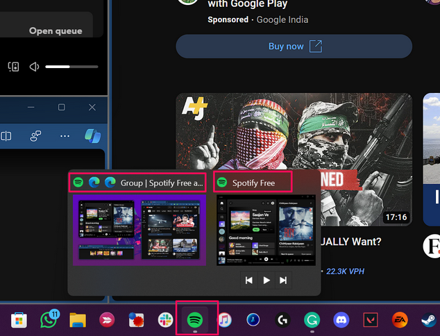 Wenn Sie nun Apps und Windows in Ihrem ausgewählten Snap -Layout auf Ihrem Windows 11 -Gerät schnappen oder an Pin- oder Pin -Pin -Optionen schnappen, werden sie automatisch in einer Snap -Gruppe zusammengeklemmt. Dies ermöglicht einen einfachen Zugriff auf das SNAP -Layout in der Taskleiste oder das Registerkarte Alt + in Windows 11.