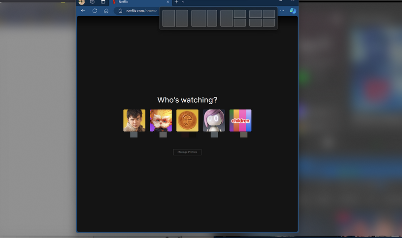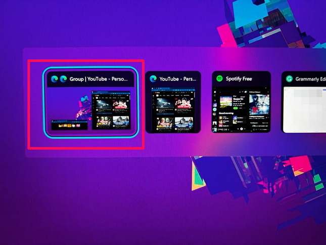 Wenn Sie den Cursor in einer der in einer Snap -Gruppe enthaltenen App oder Fenster bewegen, können Sie außerdem die App oder das Fenster einzeln und als Snap -Gruppe anzeigen.