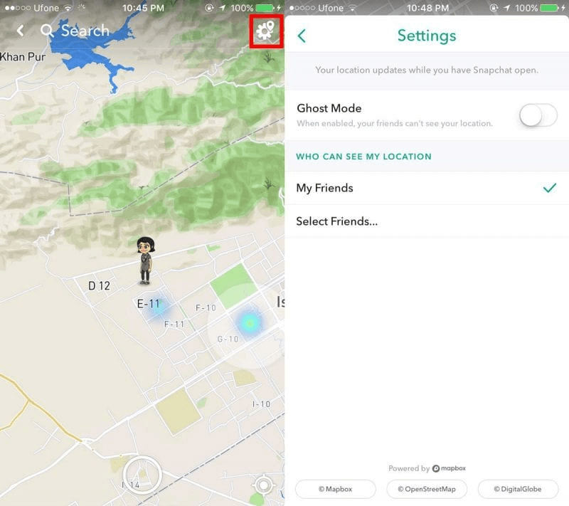 Der einfachste Weg, die Freigabe Ihres Standorts auf Snapchat zu beenden, besteht darin, den Ghost-Modus zu aktivieren. Diese Funktion verhindert, dass Ihre Freunde Ihren Standort auf der Karte sehen. Um es zu aktivieren: