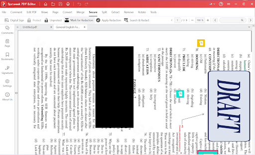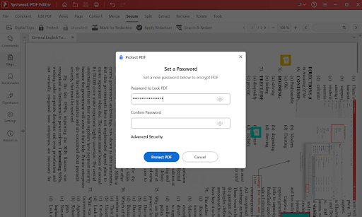 So sichern Sie Ihre PDFs –Systweak PDF Editor bietet zahlreiche Tools, mit denen Sie vertrauliche Informationen in Ihren PDF-Dokumenten schützen und schwärzen können.