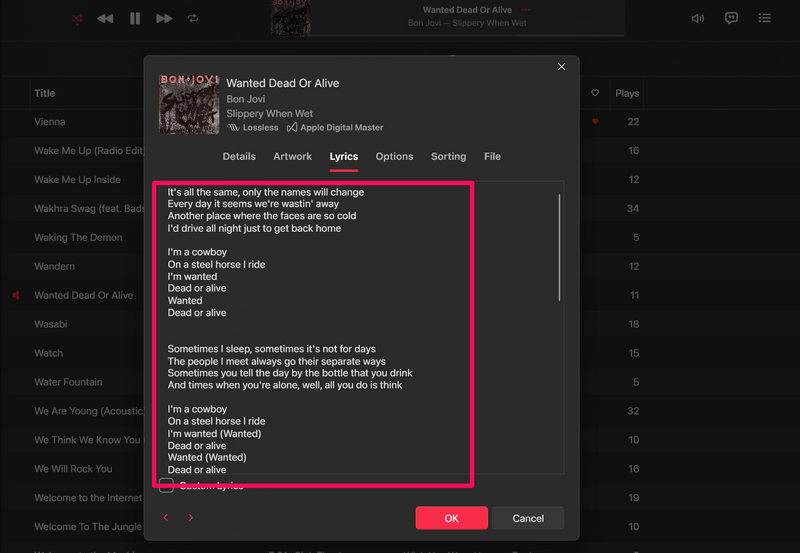 11.Nun ist es wichtig, im Hinterkopf zu behalten, dass, sobald Sie benutzerdefinierte Liedtexte zu einem Lied hinzugefügt haben,Es wird keine Live-Lyrics mehr unterstützenin der Apple Music App.
