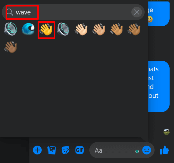 Wenn Ihnen jemand zuwinkt und Sie das Winken erwidern möchten, ist der Vorgang derselbe. Suchen Sie im Emoji-Menü nach dem Wellensymbol und senden Sie es. So einfach ist das.