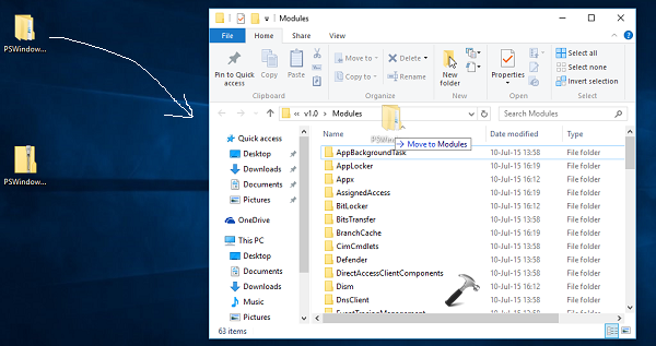 3.Kopieren Sie anschließend den extrahierten ZIP-Ordner mit dem Namen PSWindowsUpdate aus Schritt 1 nachModuleOrdner, der in Schritt 2 geöffnet wurde: