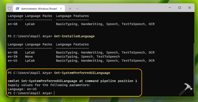 Laut Microsoft „Mit diesem neuen PowerShell -Modul können Benutzer einfach Sprachen und verwandte Sprachfunktionen hinzufügen und Einstellungen wie System bevorzugte UI -Sprache, Systemgebietsschema, Eingabemethode (Tastatur), Gebietsschema, Spracherkenner und Benutzer bevorzugte Sprachliste unter Verwendung der PowerShell -Eingabeaufforderung.“