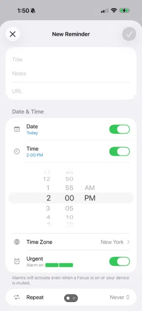 Die Erinnerungen-App unterstützt jetzt Alarme für dringende Aufgaben. Wenn eine Erinnerung als „Dringend“ markiert ist, löst iOS eine Sperrbildschirmwarnung mit Schlummer- und Stopp-Optionen aus, ähnlich wie ein Wecker. Es ist eine subtile, aber praktische Ergänzung für zeitkritische Aufgaben wie die Einnahme von Medikamenten oder die Teilnahme an einem Anruf und ermöglicht schnelle Aktionen, ohne die App öffnen zu müssen.