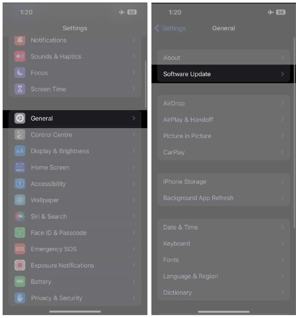 Wenn die Aktualisierung Ihrer veralteten iPhone-Software kürzlich fehlgeschlagen ist, versuchen Sie, das Update neu zu starten, um zu sehen, ob das Problem dadurch behoben wird. Wenn Sie außerdem noch nicht versucht haben, ein Update durchzuführen, und die Software Ihres iPhones veraltet ist, kann es außerdem dazu kommen, dass der Bildschirm schwarz und weiß wird. Das Aktualisieren der Software Ihres iPhones auf die neueste Version behebt häufig den grauen Bildschirm.