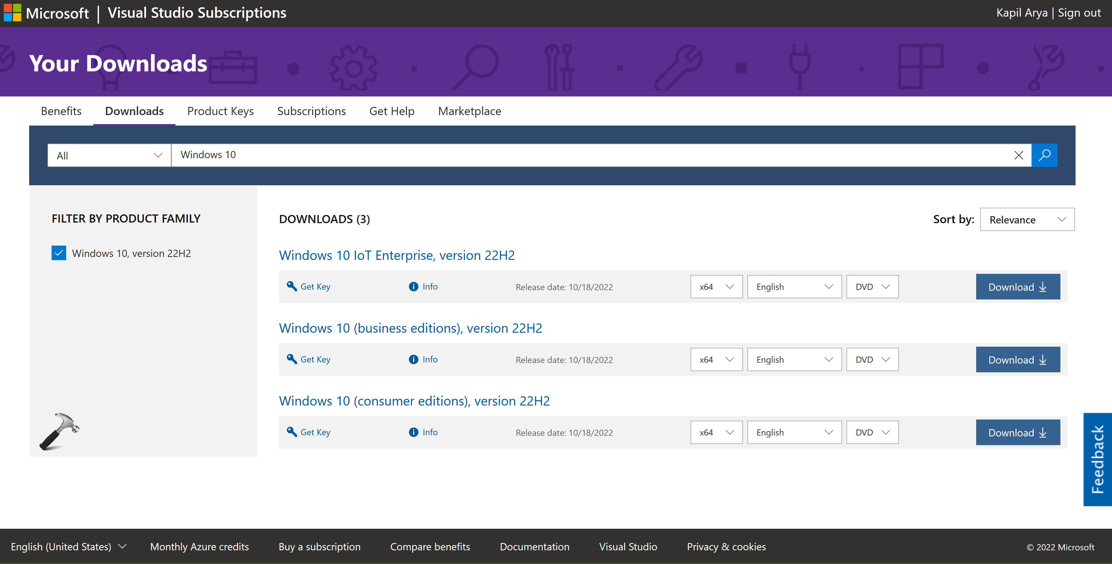 Sie können die ISO-Datei der Windows 10 Business Editions über Ihr Visual Studio-Abonnement beziehen.