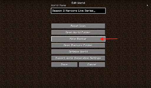 - Wählen Sie die Welt aus, die Sie sichern möchten, und klicken Sie aufBearbeiten.