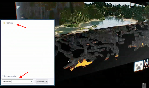 - Klicken Sie auf Ihrem Computer auf die Schaltfläche „Start“ und geben Sie ein%appdata%im Suchfeld und öffnen Sie dann dieWanderndOrdner.