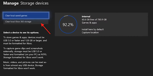 - WählenLokal gespeicherte Spiele löschenUndLöschen Sie den lokalen Xbox 360-Speicher.