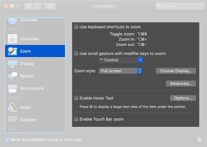 StartSystemeinstellungen→Zugänglichkeit→Zoom→ Stellen Sie sicher, dass alles in Ordnung istungeprüftHier.