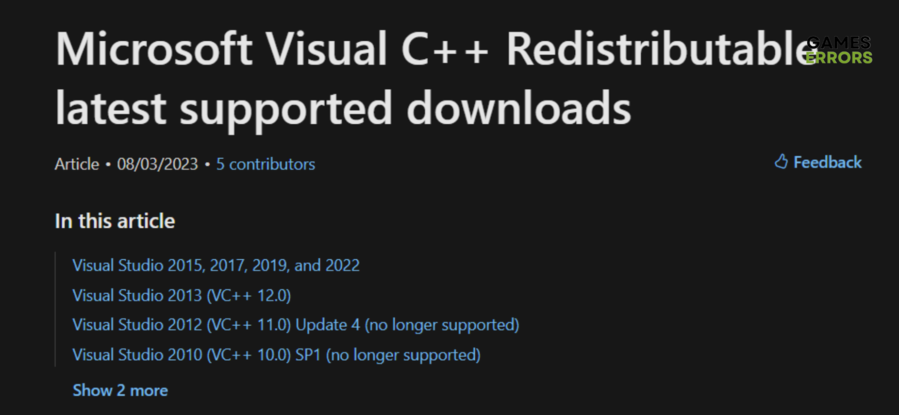 3. Dort finden Sie eine Liste vonVerfügbare Visual C++ Redistributable Packages.