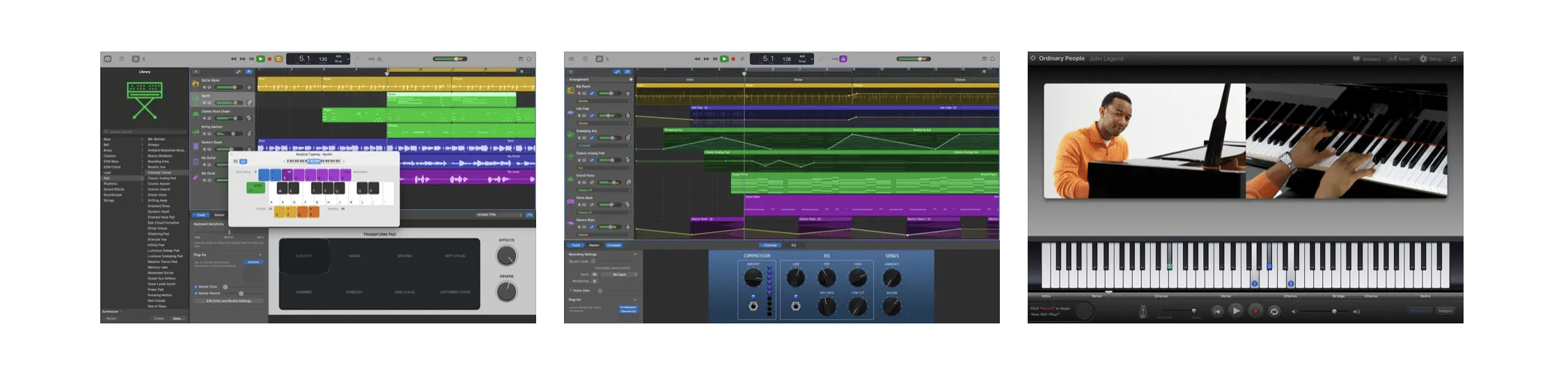 GarageBand ist auf Apple-Geräten verfügbar und die native Audiobearbeitungs-App von Apple, die virtuelle Musikinstrumente wie Schlagzeug und Gitarren sowie intelligente Steuerungen zum Produzieren neuer Songs oder Remixen vorhandener Songs bietet. Benutzer haben außerdem Zugriff auf die Sound Library, um Inspiration für neue Projekte der größten Produzenten von heute zu erhalten und vieles mehr zum „Aufnehmen, Mischen, Mastern, Teilen“.