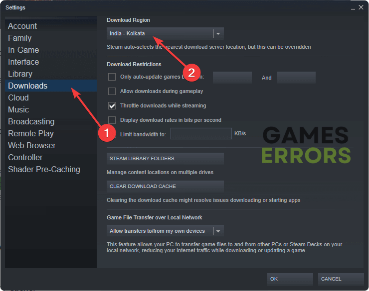 Wenn es in Ihrer Region serverbezogene Probleme gibt, werden Sie zwangsläufig Download- und Installationsprobleme haben. Um dieses Problem zu vermeiden, empfehlen wir Ihnen, die Download-Region zu ändern. Wenn Sie versuchen, Person 5 auf Steam zu installieren, führen Sie die folgenden Schritte aus: