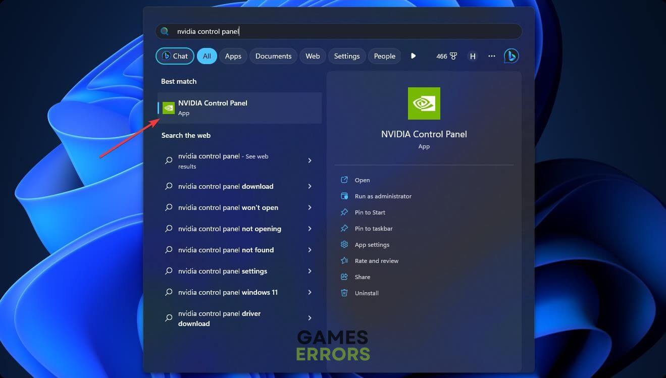 - Öffnen Sie dieStartmenü, suchen Sie nach demNVIDIA-Systemsteuerung, und öffnen Sie es.