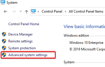 2. Klicken Sie im linken Bereich auf Erweiterte Systemeinstellungen.
