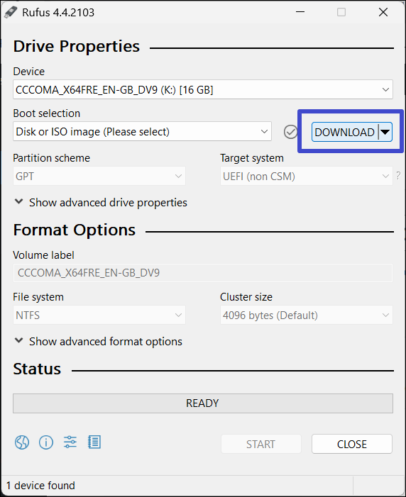 15. Sie können den Download-Fortschritt im Rufus-Hauptfenster überwachen. Abhängig von Ihrer Internetgeschwindigkeit kann es eine Weile dauern.