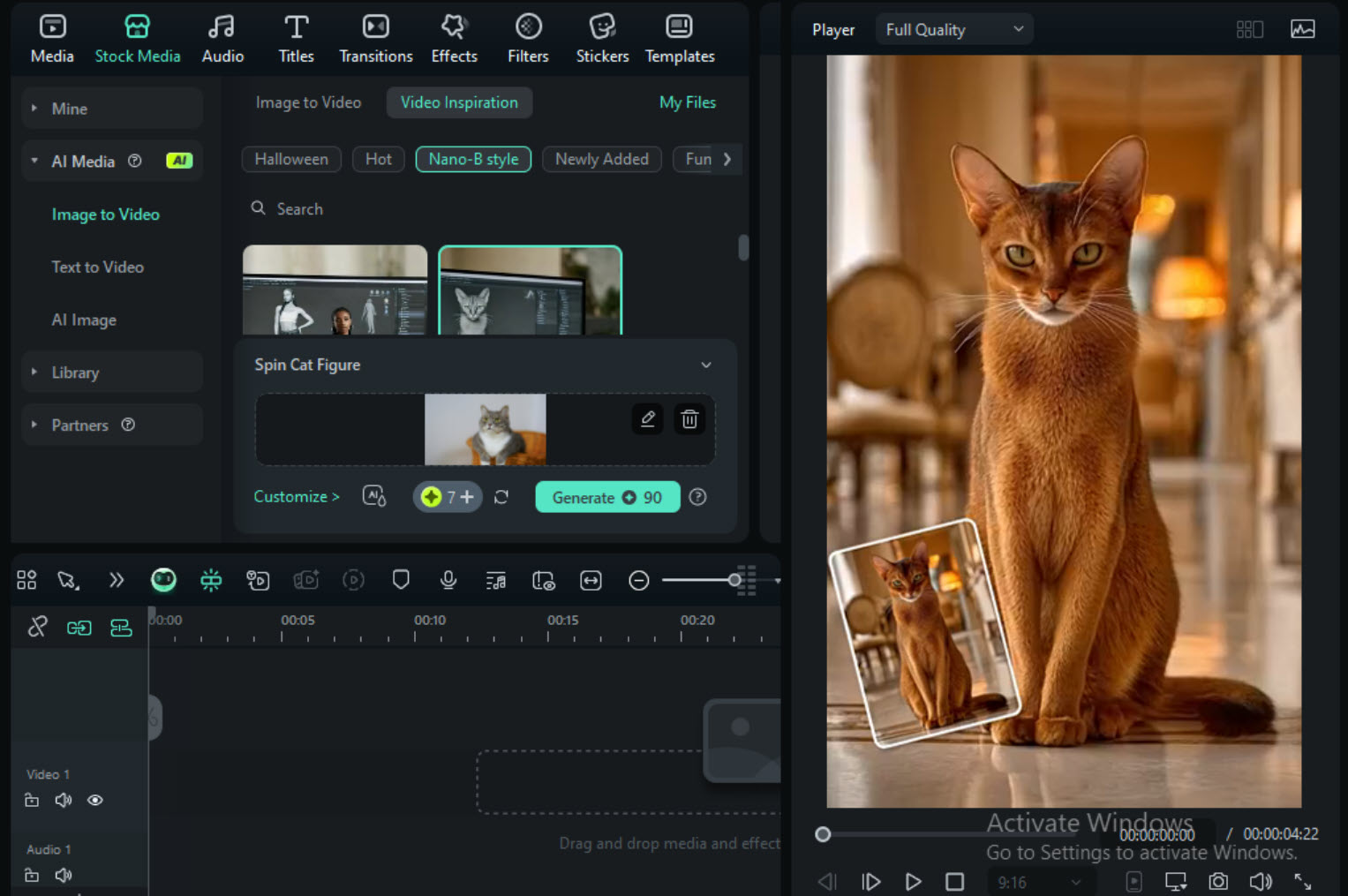 Neben anderen Ideen können Sie auch das angesagteste Nano-Bananenmodell in Filmora ausprobieren. Klicken Sie einfach auf Video-Inspiration und sehen Sie sich die Optionen an. Wählen Sie den Nano-B-Stil. Hier sind mehrere Nano-Bananen-Modellvorlagen verfügbar; Wählen Sie diejenige aus, die zu Ihrem kreativen Stil passt, um Ihrem Video ein elegantes Finish zu verleihen.