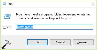 + Rund Typlusrmgr.mscKlicken/tippen Sie im Dialogfeld „Ausführen“.OK, um das Snap-In „Lokale Benutzer und Gruppen“ zu öffnen.