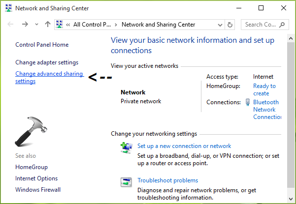 Methode 1: Über Systemsteuerung/Netzwerk und Freigabecenter