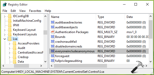 HKEY_LOCAL_MACHINESYSTEMCurrentControlSetControlLsa